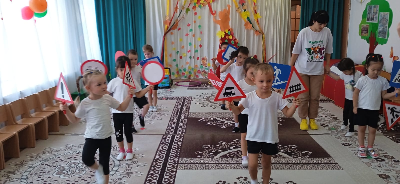 Наша сказка по ПДД была необычной и очень интересной, ребята предшкольной группы побывали в роли участников. Все вместе изучали правила поведения на дороге. Во время сказки проводили эстафеты, дети играли в подвижные игры, одновременно повторяя правила дорожного движения. Вместе помогали  разобраться героям, Светофорику и Бабе Яге, для чего так важно и нужно соблюдать правила. Детки были очень активные, играли с удовольствием. Мероприятие способствовало развитию не только учебных умений и навыков по правилам дорожного движения, но и развитию моторики, ловкости и быстроты реакции, умению работать в команде, сообща. Ребята порадовали своими знаниями о правилах дорожного движения, старательно выполняли задания, дружно работали. Все участники получили море удовольствия и позитива.