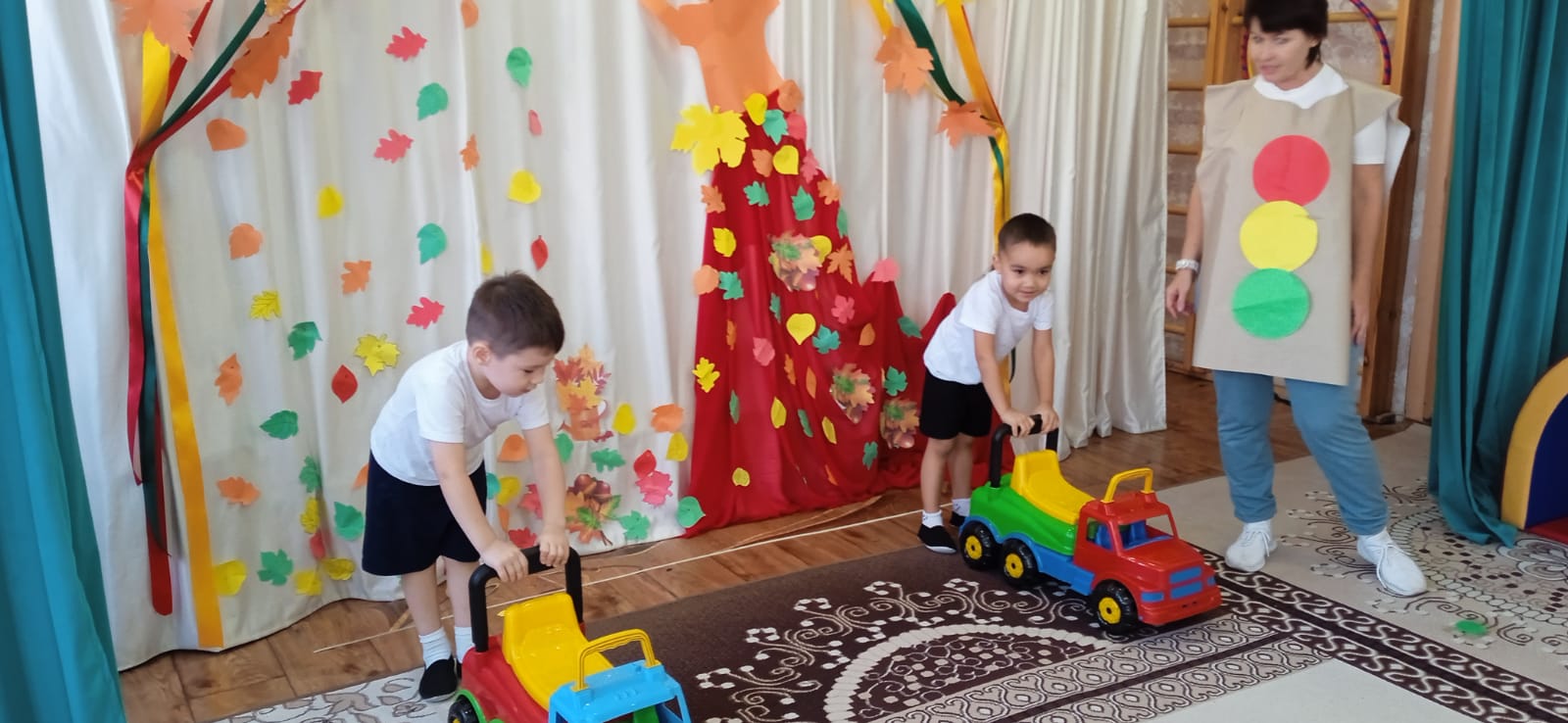 В октябре  2022 года  в детском саду-ясли №17 «Ручеек» состоялась спортивно-музыкальная сказка для детей предшколы и старших групп по ПДД. «Светофорик и Баба Яга», которую подготовили и провели инструктор по ФК Казицина Н.И., методист Жатканбаева Н.А., педагог - психолог  Гализина Е.А.