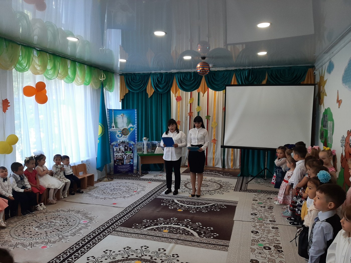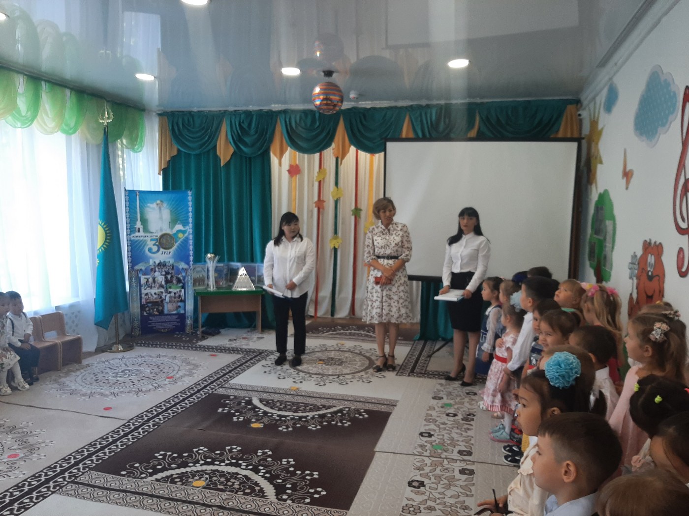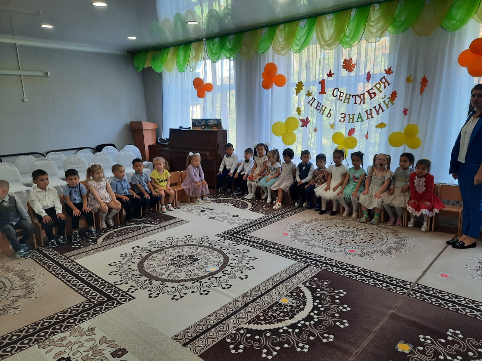 Ярким развлечением наш детский сад отметил 1 сентября. Весь праздник сохранялась чудесная радостная атмосфера. Мероприятия в детском саду начались с торжественной линейки, посвящённой Дню знаний, которую организовали и провели методист Жатканбаева Н.А., педагог по казахскому языку Кайсенова Ж.Б. затем проведены были познавательные игры, беседы.
