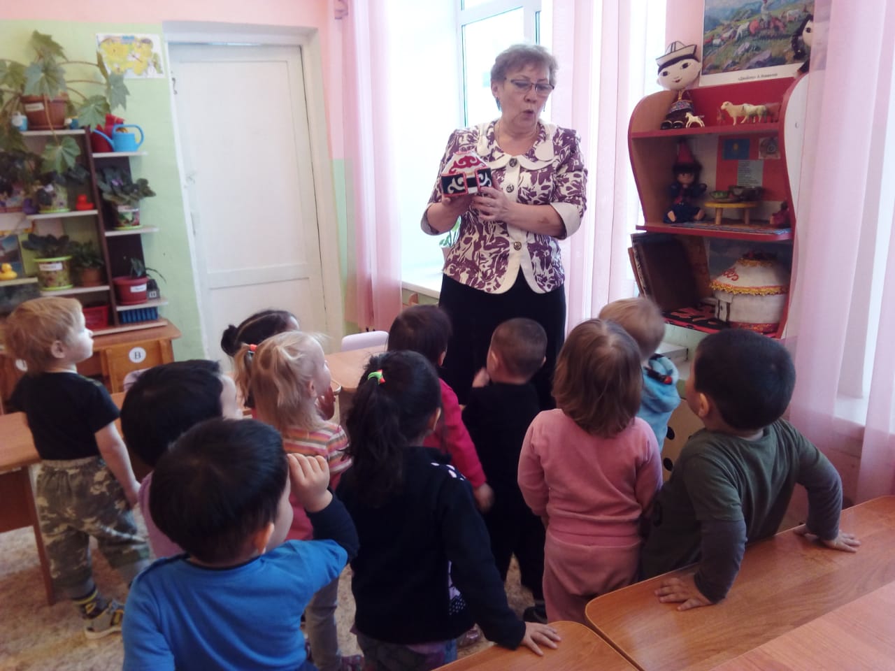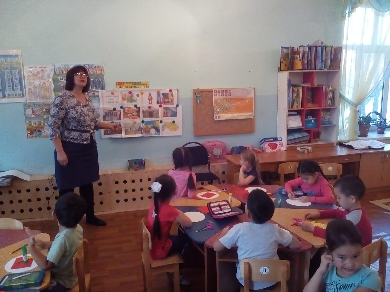 Тәрбиешілер сабақ барысында тақырыптық - әңгіме өткізіп, балалармен иллюстрацияларды қарады, викториналар өтті. Сабақ барысында балалар «Орнамент в круге и полосе» аппликациясын орындады.